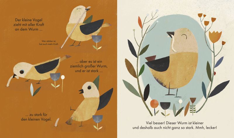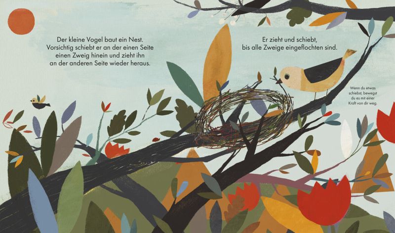 Es ist früh am Morgen, doch der kleine Vogel ist schon putzmunter. Schließlich gibt es eine Menge für ihn zu tun. Und so ein Nest zu bauen ist ganz schön anstrengend. Dieses wunderschön illustrierte Sachbilderbuch begleitet den kleinen Vogel bei seiner Arbeit und erklärt in einfachen, poetischen Sätzen, was für Kräfte er aufbringen muss, um sich ein Zuhause zu bauen. Auf der letzten Doppelseite finden sich kurze, zusammenfassende Infotexte, die zu weiterführenden Gesprächen anregen.