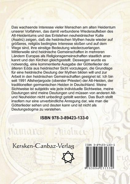 Das wachsende Interesse vieler Menschen am alten Heidentum unserer Vorfahren, das damit verbundene Wiederaufleben des Alt-Heidentums und das Entstehen neuheidnischer Kulte (Ásatrú) zeigen, daß die heidnischen Mythen heute wieder auf größeres, religiös bedingtes Interesse stoßen und auf dem Wege sind, ihre einstige Bedeutung wiederzuerlangen. Mittlerweile sind heidnische Gemeinschaften in mehreren Ländern Europas als Religionsgemeinschaften staatlich anerkannt und den Kirchen gleichgestellt. Deswegen wurde es notwendig, eine kommentierte Ausgabe der Götterlieder der älteren Edda aus heidnischer Sicht vorzulegen, die Grundlage für eine heidnische Deutung der Mythen bilden will und zur Arbeit in den heidnischen Gemeinschaften geeignet ist. Ich bin seit 1991 Allsherjargode (oberster Priester) der Alt-Heiden, der traditionellen germanischen Heiden in Deutschland. Meine Sichtweise ist subjektiv wie jede individuelle Sichtweise, meine Deutungen sind meine Deutungen und müssen von anderen Alt- und Neuheiden nicht unbedingt geteilt werden. Das Buch stellt insofern nur eine unverbindliche Anregung dar, wie man die Götterlieder sehen und deuten kann und ist nicht als Deutungsdogma zu verstehen.