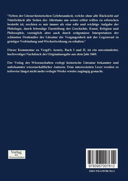 Dieser Kommentar zu Vergil's Aeneis, Buch I und II, ist ein unveränderter, hochwertiger Nachdruck der Originalausgabe aus dem Jahr 1869.