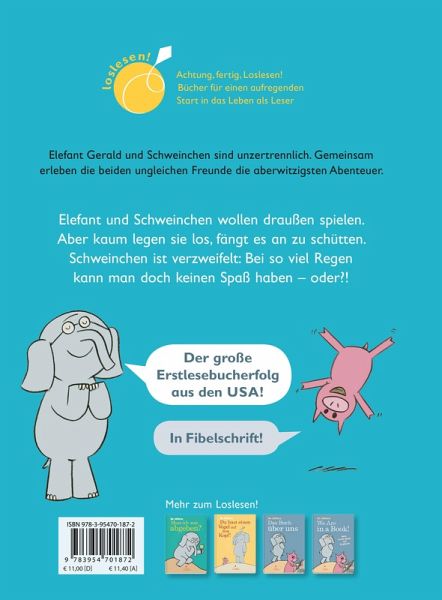 Doch die beiden wären nicht Elefant und Schweinchen, wenn sie nicht das Beste aus der Sache machen würden. Am Ende finden nicht nur sie, sondern auch der Leser: Es gibt nichts Besseres als Regen, wenn man draußen spielen will!