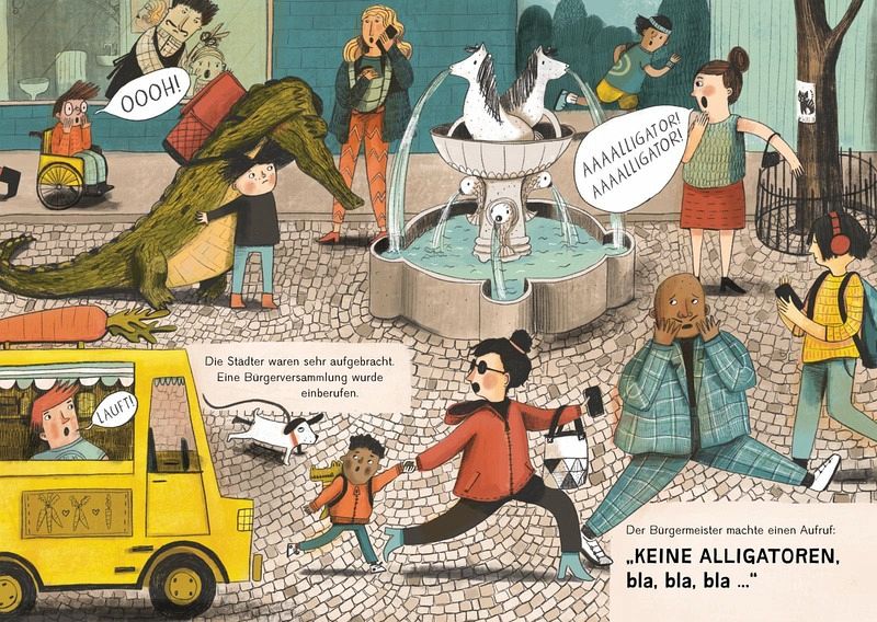 Die ganze Stadt ist in Aufruhr. Ein Alligator! Mitten auf dem Marktplatz! "LAUFT", rufen alle. Doch der Junge aus dem Wald weiß, dass der Alligator eigentlich nur einsam ist. Und hungrig. Doch die Bewohner wollen nichts von einem Alligator in der Stadt wissen. Dabei hat der Alligator bisher nicht mal jemanden gefressen. Schafft der Junge es, seinen ungewöhnlichen Freund zu beschützen?
