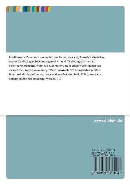 Ich möchte mit dieser Diplomarbeit darstellen, was es für die Jugendhilfe im allgemeinen und für die Jugendarbeit im besonderen bedeutet, wenn die Kommunen, die ja einen wesentlichen Teil dieser Arbeit tragen, in immer größere finanzielle Schwierigkeiten geraten. Damit soll die Beeinflussung der sozialen Arbeit durch die Politik an einem konkreten Beispiel aufgezeigt werden. Schließlich wird sozialpädagogisches Handeln durch politische Vorgaben sehr stark bestimmt. In einem besonderen Maße gilt das für die finanzielle Ausstattung der einzelnen Einrichtungen, deren ausreichende Erlangung über Existenz oder Nichtexistenz einer Einrichtung entscheidet. Andererseits ist ja ein Ziel sozialpädagogischer Tätigkeit die Befähigung der KlientInnen zu Autonomie und Selbstbestimmung. Das heißt für mich auch politische Partizipation. Gemeint ist damit das Sich-Einsetzen für die eigenen Lebensverhältnisse, die nicht unwesentlich von der Politik mitbeeinflußt werden. Die KlientInnen sollen befähigt werden, sich in die Politik einzuschalten und für ihre Interessen einzutreten.
