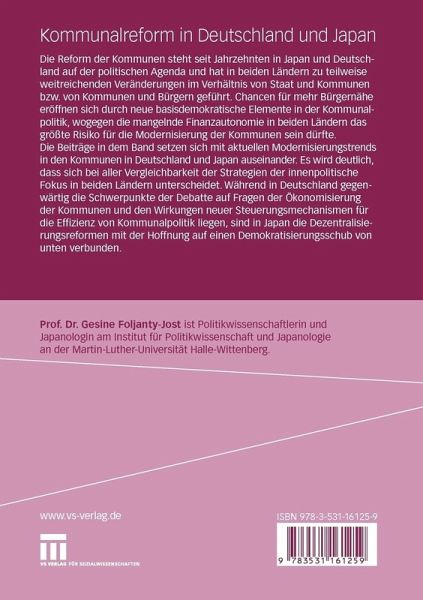 Die Reform der Kommunen steht seit Jahrzehnten in Japan und Deutschland auf der politischen Agenda und hat in beiden Ländern zu teilweise weitreichenden Veränderungen im Verhältnis von Staat und Kommunen, bzw. von Kommunen und Bürgern geführt. Chancen eröffnen sich für mehr Bürgernähe durch neue basisdemokratische Elemente in der Kommunalpolitik, wogegen die mangelnde Finanzautonomie in beiden Ländern das größte Risiko für die Modernisierung der Kommunen sein dürfte.