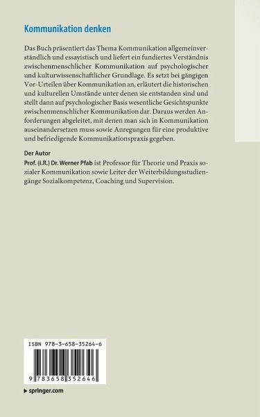Das Buch präsentiert das Thema Kommunikation allgemeinverständlich und essayistisch und liefert ein fundiertes Verständnis zwischenmenschlicher Kommunikation auf psychologischer und kulturwissenschaftlicher Grundlage. Es setzt bei gängigen Vor-Urteilen über Kommunikation an, erläutert die historischen und kulturellen Umstände, unter denen sie entstanden sind, und stellt dann auf psychologischer Basis wesentliche Gesichtspunkte zwischenmenschlicher Kommunikation dar. Daraus werden Anforderungen abgeleitet, mit denen man sich in Kommunikation auseinandersetzen muss sowie Anregungen für eine produktive und befriedigende Kommunikationspraxis gegeben.