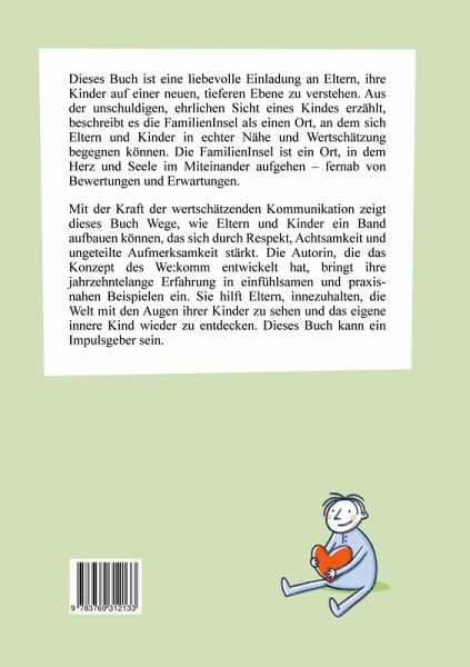 Dieses Buch ist eine liebevolle Einladung an Eltern, ihre Kinder auf einer neuen, tieferen Ebene zu verstehen. Aus der unschuldigen, ehrlichen Sicht eines Kindes erzählt, beschreibt es die FamilienInsel als einen Ort, an dem sich Eltern und Kinder in echter Nähe und Wertschätzung begegnen können. Die FamilienInsel ist ein Ort, in dem Herz und Seele im Miteinander aufgehen - fernab von Bewertungen und Erwartungen. Mit der Kraft der wertschätzenden Kommunikation zeigt dieses Buch Wege, wie Eltern und Kinder ein Band aufbauen können, das sich durch Respekt, Achtsamkeit und ungeteilte Aufmerksamkeit stärkt. Die Autorin, die das Konzept des We:komm entwickelt hat, bringt ihre jahrzehntelange Erfahrung in einfühlsamen und praxisnahen Beispielen ein. Sie hilft Eltern, innezuhalten, die Welt mit den Augen ihrer Kinder zu sehen und das eigene innere Kind wieder zu entdecken. Dieses Buch kann ein Impulsgeber sein.