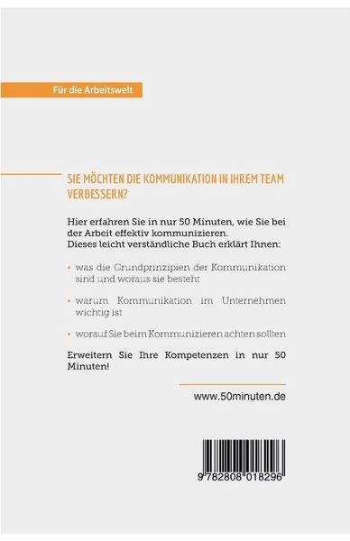 Alles über effektive Kommunikation im Unternehmen in nur 50 Minuten Erleben Sie häufig Missverständnisse bei der Arbeit? Bleiben Dinge unausgesprochen, weil keine Vertrauensbasis besteht? Sind Sie mit dem Arbeitsklima unzufrieden? Betrachten Sie die Kommunikation in Ihrem Umfeld und Sie werden schnell die Ursachen für einige Kommunikationsprobleme finden. Mit guter Kommunikation legen Sie die Basis für jeden Erfolg. Dazu gehört nicht nur das tatsächlich Gesagte, sondern auch non- und paraverbale Kommunikation. Dieses Buch gibt Ihnen Tipps, wie Sie Ihr Verhalten an Ihr Gegenüber und die jeweilige Situation anpassen, Ihre Kommunikationsweise effektiver gestalten und auch die Atmosphäre in Ihrem Team verbessern können. Nach 50 Minuten können Sie: ¿ die Ursachen für Kommunikationsprobleme in Ihrem Umfeld feststellen ¿ die Voraussetzungen für fruchtbare Kommunikation innerhalb Ihres Teams schaffen ¿ Ihre Verhaltensweisen anpassen, um effektiver zu kommunizieren Starten Sie mit diesen praktischen Tipps voll durch! Über 50MINUTEN.DE Für die Arbeitswelt Was bringt Sie im Job weiter? Die Serie Für die Arbeitswelt der Reihe 50Minuten ist für alle geeignet, die sich ¿ egal auf welchem Abschnitt ihrer Karriere ¿ neue persönliche und berufliche Kompetenzen aneignen, ihr Potenzial optimal ausschöpfen oder einfach ihre Work-Life-Balance hinterfragen wollen. Unsere kompakten Titel enthalten nicht nur eine von Experten erstellte Übersicht über die relevante Theorie, sondern auch konkrete Anleitungen, die von zahlreichen Beispielen unterstützt werden. Die einfache und leicht verständliche Formulierung der komplexen Sachverhalte ist somit der ideale Ausgangspunkt für Angestellte, Arbeitgeber und Arbeitssuchende.