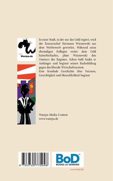 In einer Stadt, in der nur das Geld regiert, wird der Konzernchef Hermann Wiesnewski aus dem Wettbewerb geworfen. Während seine ehemaligen Kollegen weiter dem Geld hinterherlaufen, plant Wiesnewski den Umsturz des Regimes. Schon bald findet er Anhänger und beginnt seinen Rachefeldzug gegen das liberale Wirtschaftssystem.Eine fesselnde Geschichte über Fairness, Gerechtigkeit und Menschlichkeit beginnt!"Wenn der Würfel fällt und eine 6 zeigt, muss das nicht immer etwas positives sein.Du kommst zwar schneller voran, aber eventuell nur schneller ins Unglück.Wer Einsen wirft kommt schleppend voran, hat aber gleichzeitig mehr Zeit für noch andere Sachen.Wie man sieht, bestimmt der Würfel.Alles.Aber du entscheidest wie du es angehen möchtest.Alles bleibt Schicksal. Alles.Und du bleibst du selbst."