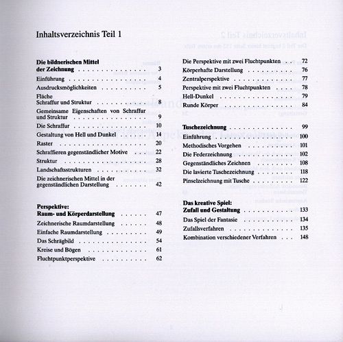 Der zweite Teil enthält Themen und Motive: die Darstellung von Porträt, menschlicher Figur, von Tieren, Objekten und von Landschaft. Die Erklärung realistischer Darstellung wird genauso berücksichtigt wie die Entwicklung eines persönlichen Zeichenstils. Die methodische Konzeption erlaubt der Leserin und dem Leser, bei einem beliebigen Thema oder Verfahren einzusteigen, ohne den mühsamen Weg eines eng vorgeschriebenen Lehrgangs gehen zu müssen. Die Anforderungen an die zeichnerischen Voraussetzungen sind unterschiedlich, so dass sich der Anfänger genau so angesprochen fühlt wie derjenige, der schon einige Fertigkeiten im Zeichnen erworben hat.