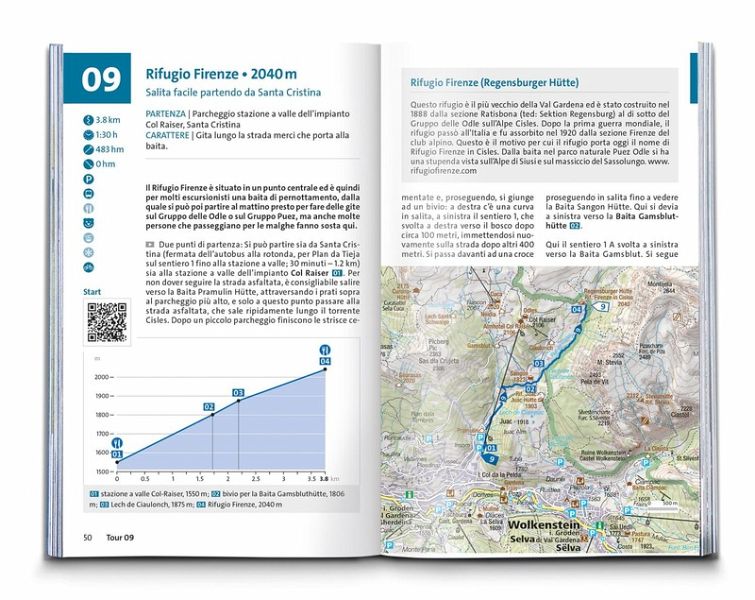 Non importa se siete da soli, con la famiglia o con gli amici, l'importante è andare in giro spensierati: questo è l'obiettivo delle nostre guide escursionistiche KOMPASS. I nostri autori hanno percorso i più bei itinerari della loro regione, descrivendoli dettagliatamente e con immensa passione, facendo leva su conoscenze fondate e dando consigli utili. I riquadri della cartina presenti in ogni escursione permettono di farsi, in un batter d'occhio, una chiara idea del percorso. La barra colorata mostra il grado di difficoltà e permette così di scegliere in modo facile e veloce le escursioni per voi più appropriate.