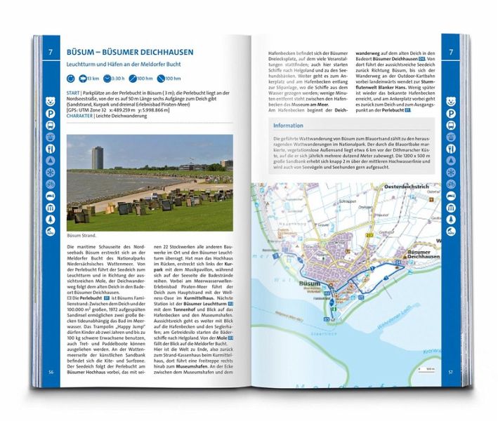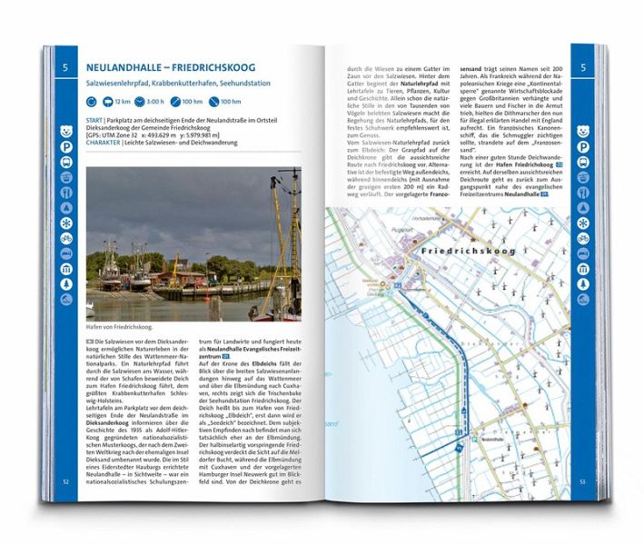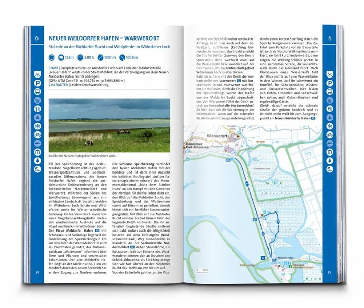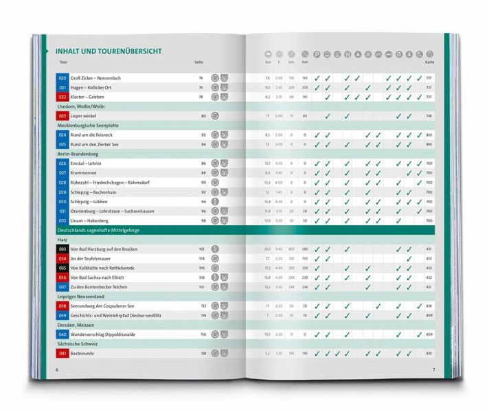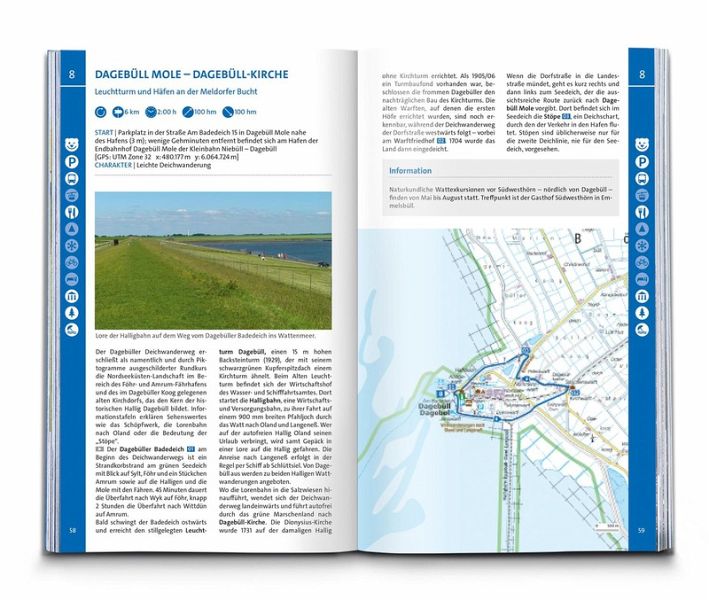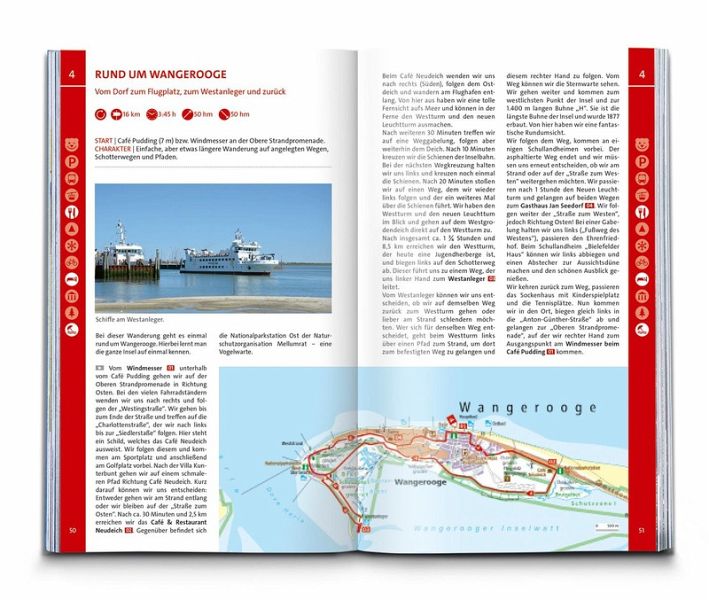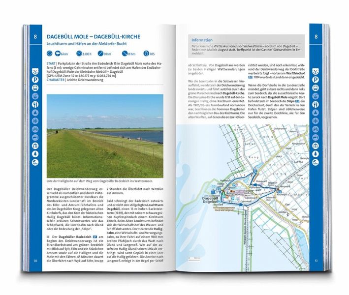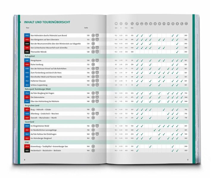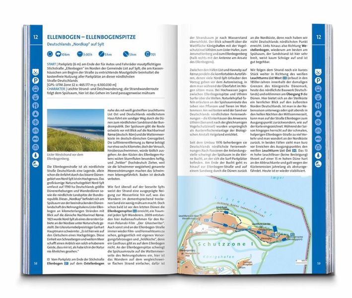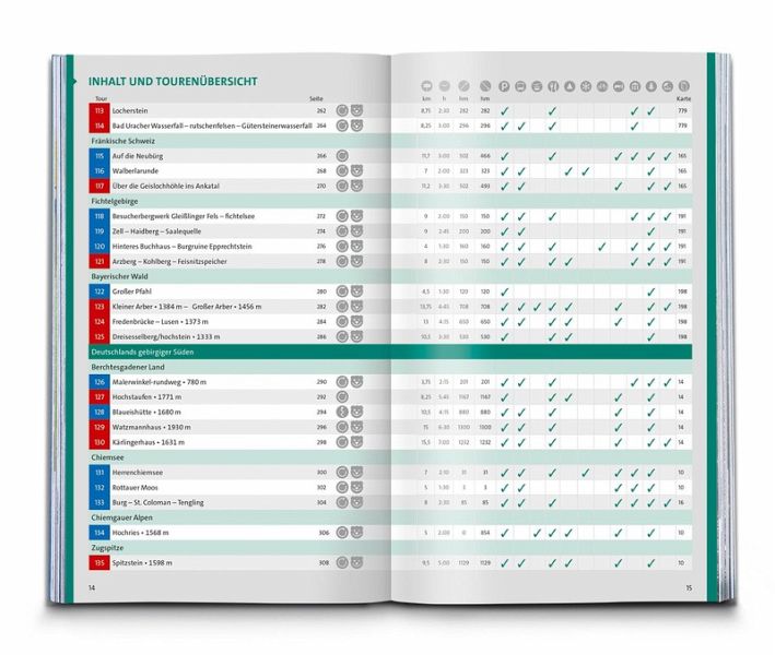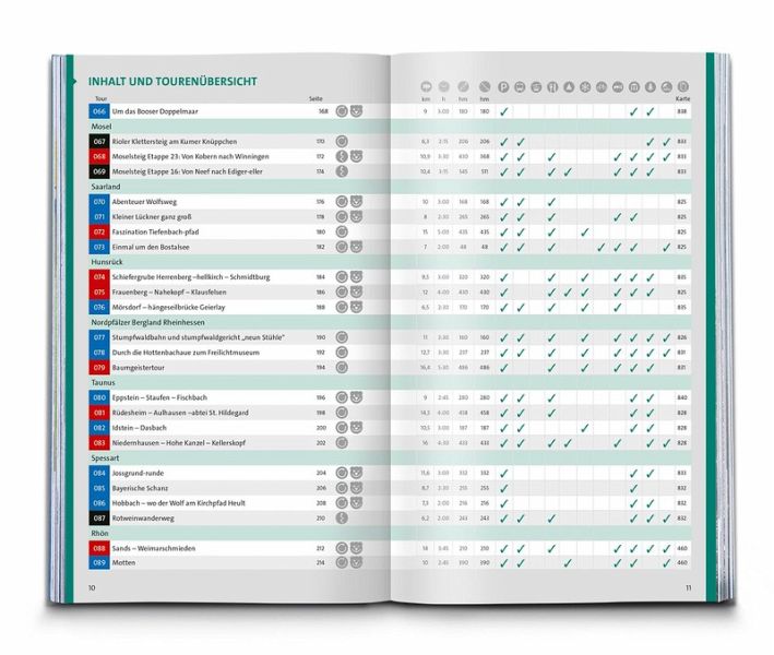 Das Buch enthält exakte Wegbeschreibungen und detaillierte Karten mit dem eingezeichneten Verlauf zu jeder Wanderung. Dabei ist auf einen Blick erkennbar, ob es sich beim Untergrund vorwiegend um einen normalen Weg, einen schmaleren Pfad oder um einen unbefestigten Steig handelt. Start- und Zielpunkte sowie wichtige Wegpunkte sind deutlich markiert und erleichtern die Orientierung. Mit dabei sind die GPX-Daten zum Download. Angaben zur Schwierigkeit, Gehzeit, zu den Höhenmetern und Gesamtkilometern sowie zum Charakter der Touren sind übersichtlich und schnell erfassbar präsentiert. Zusätzliche Hinweise zu Einkehr- oder Bademöglichkeiten, Sehenswürdigkeiten, etc. und ob die Tour für Kinder geeignet ist machen die Auswahl und Planung der nächsten Wanderung spielend einfach.