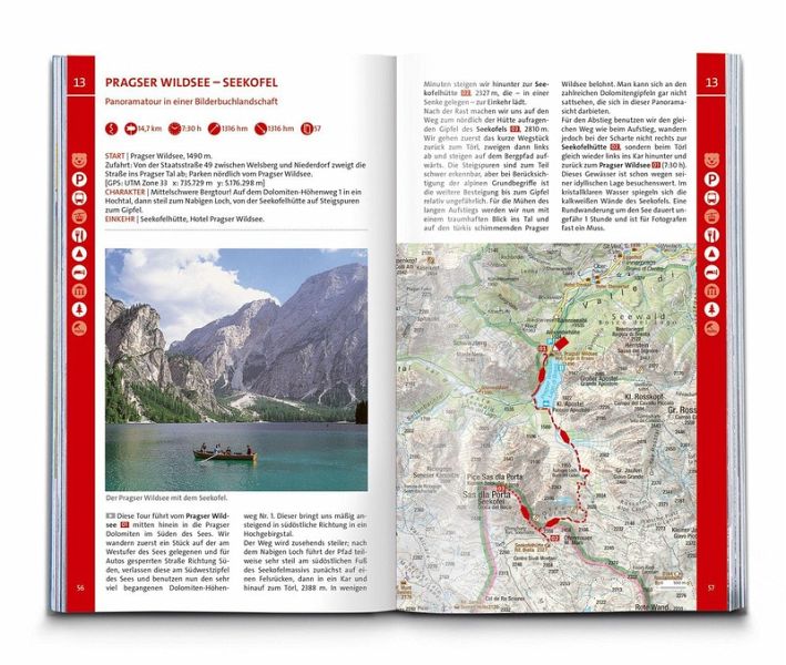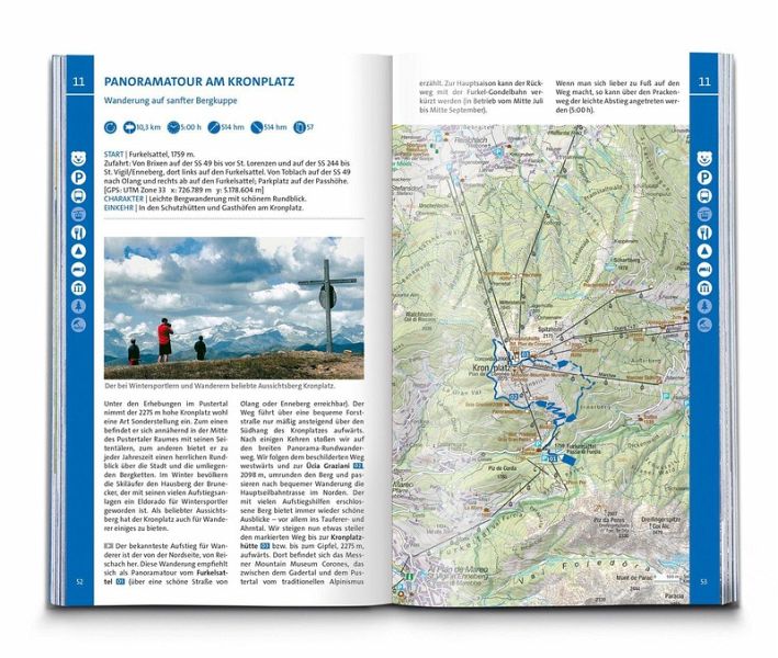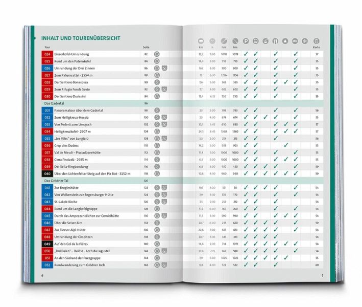 Das Buch enthält exakte Wegbeschreibungen und detaillierte Karten mit dem eingezeichneten Verlauf zu jeder Wanderung. Dabei ist auf einen Blick erkennbar, ob es sich beim Untergrund vorwiegend um einen normalen Weg, einen schmaleren Pfad oder um einen unbefestigten Steig handelt. Start- und Zielpunkte sowie wichtige Wegpunkte sind deutlich markiert und erleichtern die Orientierung. Mit dabei sind die GPX-Daten zum Download. Angaben zur Schwierigkeit, Gehzeit, zu den Höhenmetern und Gesamtkilometern sowie zum Charakter der Touren sind übersichtlich und schnell erfassbar präsentiert. Zusätzliche Hinweise zu Einkehr- oder Bademöglichkeiten, Sehenswürdigkeiten, etc. und ob die Tour für Kinder geeignet ist machen die Auswahl und Planung der nächsten Wanderung spielend einfach.
