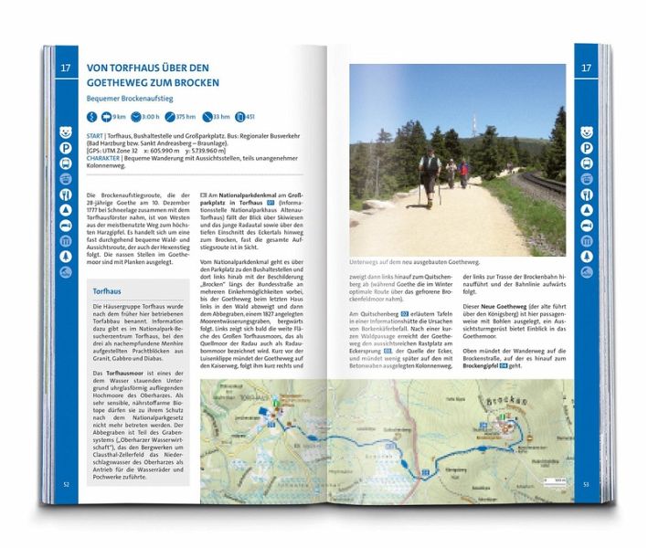 Wer kennt ihn nicht, den Harz, die dampfende Brockenbahn und die Bilder vom Brockengipfel im Winter, wenn Stürme und Schnee alles in bizarre Eisskulpturen verwandeln? Oder die Granitklippen, die durch eine spezielle Verwitterungsart ihren ganz eigenen Charakter (und Namen) erhalten haben? Zwischen den kargen Gipfellagen des Brockenplateaus und dem Vorland erlebt man eine überraschende landschaftliche Vielfalt. Ausgedehnte Wälder, tief eingeschnittene (Kerb-)Täler, wie die der Bode, der Oker und der Selke, aussichtsreiche Hochflächen, wilde Flussläufe, plätschernde Bäche, rauschende Wasserfälle, Blockhalden, bunte Bergwiesen und urzeitliche Hochmoore begeistern zu allen Jahreszeiten.