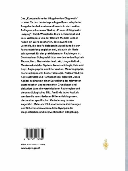 Thorax: Radiologische Anatomie; Infektionen; AIDS; Neoplasien; Chronische Lungenerkrankungen; Lungenerkrankungen durch Inhalation; Erkrankungen der Luftwege; Verletzungen der Lunge; Pulmonales Gefäßsystem; Pleura; Mediastinum; Differentialdiagnosen.- Herz: Bildgebungstechniken des Herzens; Kongenitale Herzerkrankungen; Erworbene Herzerkrankungen; Differentialdiagnosen.- Gastrointestinaltrakt: Ösophagus; Magen;Duodenum und Dünndarm; Kolon; Leber; Gallengangsystem; Pankreas; Milz; Peritoneum und Bauchwand; Differentialdiagnosen.- Urogenitaltrakt: Nieren; Harnblase und Urethra; Retroperitoneum; Nebennieren; Männliches Becken; Weibliches Becken; Differentialdiagnosen.- Muskuloskeletales System: Trauma; Knochentumoren; Arthritis/Arthrose; Metabolische Knochenerkrankungen; Differentialdiagnosen.- Neuroradiologie: Anatomie; Gefäßerkrankungen; Trauma; Neoplasien; Demyelinisierende und degenerative Erkrankungen; Hydrozephalus; Infektionen; Kongenitale Erkrankungen; Sella und juxtaselläre Region; Wirbelsäule; Differentialdiagnosen.- Radiologie der Hals- und Kopfregion: Os temporale; Orbita; Pharynx, Larynx; Nasennebenhöhlen, Cavum nasi; Drüsen und periglanduläre Region; Mandibula und Maxilla; Differentialdiagnosen.- Gefäßdiagnostik: Technik; Thorakale Aorta und Große Gefäße; Abdomen und Becken; Thorax; Extremitäten; Differentialdiagnosen.- Mammadiagnostik: Mammographie; Mammakarzinom; Spezifische Neoplasien; Nicht maligne Läsionen; Differentialdiagnosen.- Pränatale Diagnostik: Erstes Trimenon; Ektope Schwangerschaft; Mehrlingsschwangerschaft; Zweites und drittes Trimenon; Messungen und Wachstum; Fetomaternale Strukturen; Differentialdiagnosen.- Kinderradiologie: Respirationstrakt; Gastrointestinaltrakt; Genitourinaltrakt; Muskuloskeletales System; Pädiatrische Neuroradiologie; Differentialdiagnosen.- Nuklearmedizin: Lunge; Herzszintigraphie; Gastrointestinaltrakt; Urogenitaltrakt; Knochenszintigraphie; Schilddrüsen-Szintigraphie; VerschiedeneTechniken; Differentialdiagnosen.- Kontrastmittel: Röntgenkontrastmittel; MRT Kontrastmittel; Behandlung von Kontrastmittelreaktionen.- Röntgenphysik: Röntgenphysik; Kernphysik; Strahlenbiologie; Ultraschallphysik; MRT Physik; Statistik