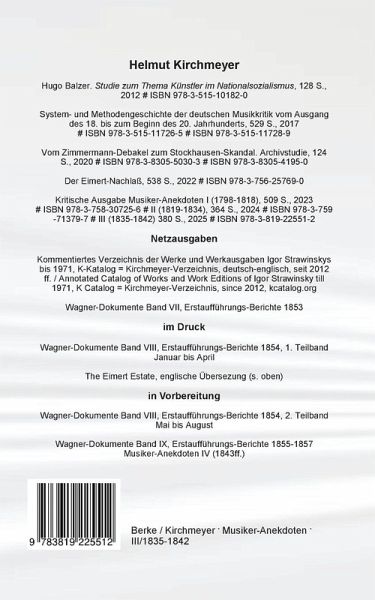 Kompendium der in den deutschsprachigen Musikzeitschriften 1798 bis 1911 veröffentlichten Anekdoten, mit einer Auswahl an Kuriositäten und zeitgenössisch auffallenden Merkwürdigkeiten. Band III 1835-1842 Was hier, historisch verbrieft, unter dem schlichten Titel Anekdote oder Merkwürdigkeit festgehalten wird, erlaubt einen Einblick in die allgemeine Musikgeschichte unter anderen als den herkömmlichen Gesichtspunkten. Was vordergründig wie eine Kuriosität anmutet, legt unter einer scheinbaren Narrenkappe bittere Schicksale, üble Feindseligkeiten, dumme und dümmliche Akteure sowohl unter agierenden wie reagierenden Künstlern und Konzert- und Theaterbesuchern frei. Selbstbewusstsein wird zur Komik, Beifall zur Rohheit, Erfolg zum Zufall. Der im Rampenlicht strahlende Künstler überspielt Krankheit, innere Not, eigene und fremde Neidgefühle mit Witzen und Parolen. Sobald der Leser die Hintergrundinformationen entschlüsselt hat, wird für ihn aus einem Anekdotenbuch ein überaus ernsthaftes Geschichtsbuch besonderer Art.