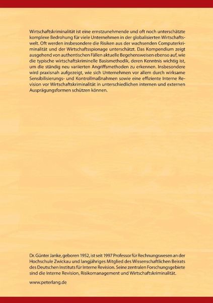 Wirtschaftskriminalität ist eine ernstzunehmende und oft noch unterschätzte komplexe Bedrohung für viele Unternehmen in der globalisierten Wirtschaftswelt. Oft werden insbesondere die Risiken aus der wachsenden Computerkriminalität und der Wirtschaftsspionage unterschätzt. Das Kompendium zeigt ausgehend von authentischen Fällen aktuelle Begehensweisen ebenso auf, wie die typische wirtschaftskriminelle Basismethodik, deren Kenntnis wichtig ist, um die ständig neu variierten Angriffsmethoden zu erkennen. Insbesondere wird praxisnah aufgezeigt, wie sich Unternehmen vor allem durch wirksame Sensibilisierungs- und Kontrollmaßnahmen sowie eine effiziente Interne Revision vor Wirtschaftskriminalität in unterschiedlichen internen und externen Ausprägungsformen schützen können.