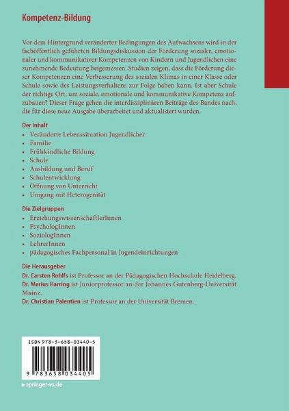Vor dem Hintergrund veränderter Bedingungen des Aufwachsens wird in der fachöffentlich geführten Bildungsdiskussion der Förderung sozialer, emotionaler und kommunikativer Kompetenzen von Kindern und Jugendlichen eine zunehmende Bedeutung beigemessen. Studien zeigen, dass die Förderung dieser Kompetenzen eine Verbesserung des sozialen Klimas in einer Klasse oder Schule sowie des Leistungsverhaltens zur Folge haben kann. Ist aber Schule der richtige Ort, um soziale, emotionale und kommunikative Kompetenz aufzubauen? Dieser Frage gehen die interdisziplinären Beiträge des Bandes nach, die für diese neue Ausgabe überarbeitet und aktualisiert wurden.