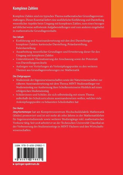 Komplexe Zahlen sind ein typisches Thema mathematischer Grundlagenveranstaltungen. Dieses Essential liefert eine ausführliche Einführung und Darstellung wesentlicher Aspekte beim Umgang mit komplexen Zahlen, zum einen bezogen auf üblicherweise auftretende Aufgabenstellungen und zum anderen eingebettet in mathematische Grundlageninhalte.