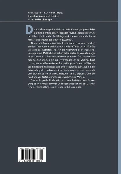 Carotis-Chirurgie (supraaortale Arterien).- Konventionelle TEA mit Patchplastik in der Carotis-Chirurgie: Veraltete Technik?.- Eversionstechnik: Tatsächlich Non-Plus-Ultra?.- Monitoring: Welches ist notwendig? Welches ist überflüssig?.- Shunt: Immer, nie oder wann und warum?.- Qualitätssicherung der DGG: Gefahren und Risiken in der BRD 1997.- A. subclavia und A. vertebralis: Transposition versus Bypass: Welche Methode hält länger bei weniger Risiko?.- Infrainguinale Rekonstruktion.- Profundaplastik: wichtigster Eingriff zur Beinerhaltung ohne jedes Risiko?.- Diskussion zum Vortrag Lindemann-Sperfeld, W. Thema: Poplitea-I und Poplitea-III-Anschluß: Wann welches Verfahren und warum mit welchem Komplikationen?.- Poplitea-Aneurysma: Fallstricke in Diagnostik und Therapie.- Venenbypass am Bein: Reversed versus in situ oder orthograd Welcher ist besser? Mit welchen Risiken oder Problemen?.- Aorto-iliakaler Abschitt.- Aorto iliakaler Abschnitt: TEA versus Bypass - Vergleichbare Alternativen? Oder welche Methode ist wann mehr indiziert?.- Aorto-iliakaler Abschnitt: Extraanatomischer Bypass - Wann und mit welchem Erfolg und Risiko?.- Das Anastomosen-Aneurysma: Schicksal oder Fehler?.- Wie wichtig ist die Arteria iliaca interna, wie schwierig ist ihre Rekonstruktion?.- Gefäßchirurgische Probleme allgemeiner Art.- Diskussion zum Vortrag Loeprecht, H. Thema: Der Rezidiveingriff: Woran denken? Wovor sich hüten?.- Diskussion zum Vortrag Kasprczak, R. Thema: Qualitätssichernde Maßnahmen (Angioskopie, Flowmetrie, Druckmessungen, DSA, IVUS etc.). Wie gefährlich sind dieses Maßnahmen?.- Diskussion zum Vortrag Martin, E. Thema: Anästhesiologische Probleme bei Gefäßpatienten.- Bauchaorteneurysma.- Bauchaorteneurysma - Wie gefährlich ist die elektive Operation?.-Unliebsame Überraschungen bei der endovaskulären Behandlung.- Rupturiertes Bauchaortenaneurysma Vertane Chancen? Managementfehler? Ethische Probleme?.- Chirurgie der thorako-abdominalen Aorta.- Aktuelle Aspekte zur chirurgischen Therapie der akuten Aortendissektion Typ A.- Stellenwert der endovaskulären Techniken im thorakalen Aortenabschnitt: Komplikationen? Risiken? Chancen?.- Schlußbemerkungen.