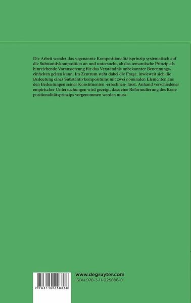 Ziel der vorliegenden Arbeit ist es, das sogenannte Kompositionalitätsprinzip systematisch auf die Substantivkomposition anzuwenden und zu untersuchen, ob das semantische Prinzip als hinreichende Voraussetzung für das Verständnis unbekannter Benennungseinheiten gelten kann. Im Zentrum steht dabei die Frage, inwieweit sich die Bedeutung eines Substantivkompositums mit zwei nominalen Elementen aus den Bedeutungen seiner Konstituenten 'errechnen' lässt und welche semantischen Eigenschaften die Anwendbarkeit des Kompositionalitätsprinzips begünstigen bzw. verhindern.