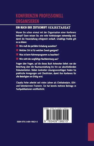 Ein komplettes Buch zum Thema "Konferenzplanung"? Ist das nicht ein bißehen viel? Nein! Jeder, der je eine Konferenz geplant hat, weiß, wie viele Vorleistungen erbracht werden müssen, damit die Veranstaltung ein Erfolg wird. Unzählige Kleinigkeiten sind zu bedenken; die kleinste Panne in der Vor bereitung kann zum peinlichen Flop während der Konferenz führen. Sei es, daß für einen Teilnehmer kein Hotelzimmer vorhanden ist oder daß der Overheadprojektor plötzlich nicht mehr funktioniert. Alles lästige Kleinigkeiten? Bestimmt nicht, denn eine gut organisierte Veranstaltung motiviert die Teilneh mer und rückt die Firma in ein positives Licht. Wenn aber eine Panne die andere jagt, beginnen die Teilnehmer, die Veranstal tung kritisch zu bewerten. Jeder weitere kleine Fehler wird nunmehr registriert und formt sich zu einem negativen Gesamt eindruck. Schade, wenn eine inhaltlich wertvolle Konferenz unter dem Strich schlecht beurteilt wird, weil die Rahmenbe dingungen nicht optimal geschaffen wurden. Vergleichen Sie das Gelingen oder Scheitern einer Konferenz mit einem erstklassigen Essen. Die Gerichte selber mögen noch so gut sein, wenn jedoch der Kellner zuerst den Wein verschüt tet, die Aschenbecher überquellen und der Raum nicht ausrei chend beheizt ist, werden Sie nicht gerne an diesen Abend zurückdenken - auch wenn die Speisen ausgezeichnet waren. Als Organisatorin sind Sie also mitverantwortlich für das Ge lingen oder Scheitern der Konferenz.