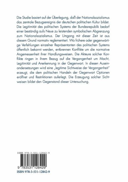 Die Studie basiert auf der Überlegung, daß der Nationalsozialismus das zentrale Bezugsereignis der deutschen politischen Kultur bildet. Die Legitimität des politischen Systems der Bundesrepublik bedarf einer beständig aufs Neue zu leistenden symbolischen Abgrenzung zum Nationalsozialismus. Der Umgang mit dieser Zeit ist aus diesem Grund normativ reglementiert. Wo frühere oder gegenwärtige Verfehlungen einzelner Repräsentanten des politischen Systems öffentlich bekannt werden, entbrennen Konflikte um die normative Angemessenheit ihrer Handlungsweisen. Die Akteure solcher Konflikte ringen in ihrem Bezug auf die Vergangenheit um Macht, Legitimität und Anerkennung in der Gegenwart. In diesen Auseinandersetzungen wird eine "legitime Sichtweise der Vergangenheit" erzeugt, die dem politischen Handeln der Gegenwart Optionen eröffnet und Restriktionen auferlegt. Die Erzeugung solcher Sichtweisen bildet den Gegenstand dieser Untersuchung.