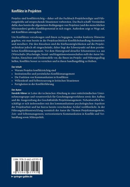 Projekte sind konfliktträchtig - daher soll das Fachbuch Projektbeteiligte und Führungskräfte auf entsprechende Situationen vorbereiten. Das Buch schafft Verständnis dafür, dass bereits die allgemeinen Bedingungen von Projekten großes Konfliktpotential in sich tragen.