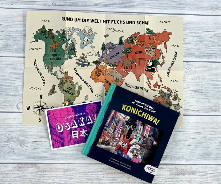 "Rund um die Welt mit Fuchs und Schaf. Konichiwa" von Fox & Sheep nimmt junge Leser mit auf eine abenteuerliche Reise des Fuchses und des Schafes, die von ihrem idyllischen Bauernhof im Schwarzwald bis in die lebendige Metropole Osaka in Japan führt. Diese Geschichte basiert auf der gleichnamigen, preisgekrönten Kinderapp sowie einem Original Spotify®-Podcast und fasziniert durch die charmante Erzählung der beiden Protagonisten, die eine Bestellung ihres selbstgemachten Apfelpunchs nach Osaka liefern möchten. Während ihrer Reise lernen die Kinder nicht nur, wie man auf Japanisch "Hallo" sagt, sondern entdecken auch die faszinierende Kultur und die leuchtende Neonwelt Osakas. Mit einer Mischung aus Spannung, Humor und der Vorstellung von kultureller Vielfalt bietet das Buch eine unterhaltsame Lernmöglichkeit für Kinder ab drei Jahren, die gleichzeitig das Verständnis für ein modernes Miteinander fördert. Begleitet wird die Erzählung von wunderschönen Illustrationen, einer interaktiven Weltkarte und einer Postkarte aus Osaka, die es ermöglichen, das Abenteuer über die Seiten hinaus zu erleben und die eigene Fantasie anzuregen.