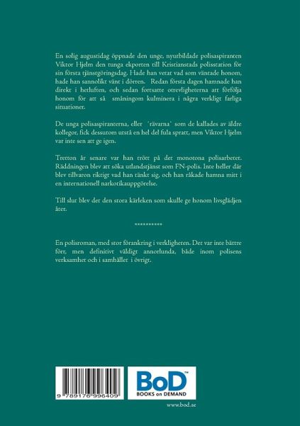 En solig augustidag öppnade den unge, nyutbildade polisaspiranten Viktor Hjelm den tunga ekporten till Kristianstads polisstation för sin första tjänstgöringsdag. Hade han vetat vad som väntade honom, hade han sannolikt vänt redan i dörren. Redan första dagen hamnade han direkt i hetluften, och sedan fortsatte otrevligheterna att förfölja honom för att så småningom kulminera i några verkligt livsfarliga situationer. De unga polisaspiranterna, eller rävarna som de kallades av äldre kollegor, fick dessutom utstå en hel del fula spratt, men Viktor Hjelm var inte sen att ge igen. 13 år senare var han trött på det monotona polisarbetet. Räddningen blev att söka utlandstjänst som FN-polis. Inte heller där blev tillvaron riktigt vad han tänkt sig och han råkade hamna mitt i en internationell narkotikauppgörelse. Till slut blev det den stora kärleken som skulle ge honom livsglädjen åter.