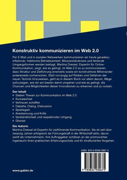Martina Dressel, Expertin für Online-Kommunikation, zeigt, wie es gelingt, im Web 2.0. so zu kommunizieren, dass Struktur und Zielführung einerseits sowie ein konstruktives Miteinander andererseits vorherrschen.