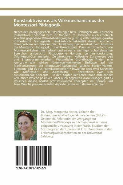 Neben den pädagogischen Einstellungen bzw. Haltungen von Lehrenden (Subjektiven Theorien) wird ihr Handeln im Unterricht auch erheblich von den gegebenen Rahmenbedingungen günstig oder weniger günstig mitbestimmt. Vorliegendes Studienbuch behandelt dieses Lehr-Lern-Praxisproblem am Beispiel der Umsetzung des konstruktiven Ansatzes der Montessori-Pädagogik in der Grundschule. Dazu wird die Sicht von Montessori-LehrerInnen erfasst und zu sechs wichtigen schulrelevanten Bereichen untersucht: Pädagogische Haltung, Lernraumgestaltung, (Montessori-)Lernmaterial, Zeitstrukturen, Kollegiale Zusammenarbeit und Elternzusammenarbeit. Wesentliche Grundfragen finden eine Antwort: Wie wirken fördernde/hemmende Einflüsse auf die Praxisumsetzung der Montessori-Pädagogik? Welche Förder-/Hemm-Elemente gibt es aus PraktikerInnensicht? Inwiefern sind zwei Konzepte wie Montessori und Konservativ theoretisch zwei sich ausschließende Konzepte in den Köpfen der LehrerInnen miteinander vereinbar? Welche positiven, aber auch negativen Auswirkungen gibt es zwischen diesen beiden praxisrelevanten Konzepten im Denken und Tun? Welche praxisrelevanten Aspekte lassen sich daraus ableiten?