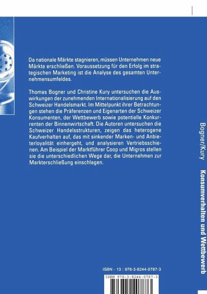 Thomas Bogner und Christine Kury untersuchen die Auswirkungen der zunehmenden Internationalisierung auf den Schweizer Handelsmarkt. Im Mittelpunkt ihrer Betrachtungen stehen die Präferenzen und Eigenarten der Schweizer Konsumenten, der Wettbewerb sowie potentielle Konkurrenten der Binnenwirtschaft. Die Autoren untersuchen die Schweizer Handelsstrukturen, zeigen das heterogene Kaufverhalten auf, das mit sinkender Marken- und Anbieterloyalität einhergeht, und analysieren Vertriebsschienen. Am Beispiel der Marktführer Coop und Migros stellen sie die unterschiedlichen Wege dar, die Unternehmen zur Markterschließung einschlagen.