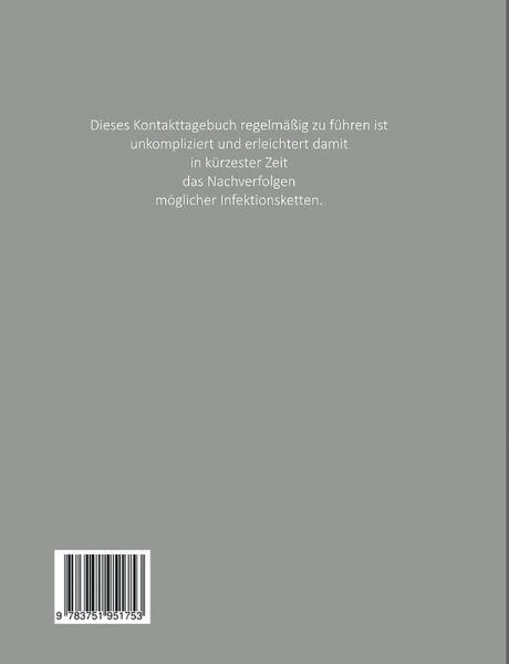 Dieses Kontakttagebuch regelmäßig zu führen ist unkompliziert und erleichtert damit in kürzester Zeit das Nachverfolgen möglicher Infektionsketten. Geeignet für den privaten, sozialen als auch im gewerblichen Bereich, sowie für alle Altersgruppen! Außerdem bietet der Kalender die Möglichkeit für mehr als 520 Kontakteinträge. Die Nachverfolgbarkeit einer möglichen Infektionsketten ist der wichtigste Baustein zur Bekämpfung der Pandemie.