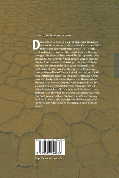 Dieses Buch behandelt die grundlegenden Konzepte der Kontinuumsmechanik, also der klassischen Feldtheorie der deformierbaren Körper. Die Theorie wird systematisch von der Kinematik über die Bilanzgleichungen, die Materialtheorie und die Entropieprinzipien entwickelt. Als konkrete Anwendungen werden ausführlich der linear-elastische Festkörper, die ideale Flüssigkeit und die Newtonsche Flüssigkeit vorgestellt. Das Buch schließt mit einer Einführung in die Mischungstheorie. Generell wird Wert auf eine klare und verständliche Darstellung gelegt, die lediglich elementare Kenntnisse der Analysis, linearen Algebra und Newtonschen Mechanik voraussetzt. Der Text wird ergänzt durch eine Vielzahl von ausgearbeiteten Problemen unterschiedlicher Schwierigkeit, die den Leser und die Leserin dazu einladen, sich aktiv mit der Materie auseinanderzusetzen. Das Buch wendet sich an Studenten und Studentinnen der Physik, Mechanik, Ingenieur- und Geowissenschaften sowie der Angewandten Mathematiknach dem Vordiplom.
