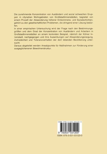 Problemstellung und Aufbau der Untersuchung Die einzelnen Gebiete, aus denen sich GroBstadtinnenstadte zusammensetzen, unterscheiden sich in der Regel auf viel faltige Weise, z.B. in ihrer Nutzungsstruktur, in ihren Baustrukturen, in ihrem Wohnstandard sowie in ihrer Aus stattung mit Wohnfolgeeinrichtungen. Es ist nun ein wesentliches Merkmal von GroBstadten, daB sich die verschiedenen Teilgruppen ihrer Wohnbev5lkerung, insbesondere die sozialen Schichten und ethnischen Gruppen, h5chst unterschiedlich auf die einzelnen Wohngebiete ver teilen. H5here Einkommens- und Berufsschichten konzentrieren sich dabei in aller Regel auf Gebiete mit hohem Wohnstandard, u.a. weil sie sich eine "bessere" Wohngegend leisten k5nnen; untere Einkommens- und Berufsschichten sowie die auslandi sche Wohnbev5lkerung mUssen dagegen mit Wohngebieten minde ren Wohnkomforts, Uberalterter baulicher Substanz sowie sol chen, in deren Nahe Industrie und Dienstleistungsbetriebe an gesiedelt sind, vorliebnehmen. Der ProzeB, in dessen Verlauf es zur Absonderung von Teilgruppen der Bev5lkerung in be stimmten Teilraumen kommt, wird als soziale Segregation be zeichnet.