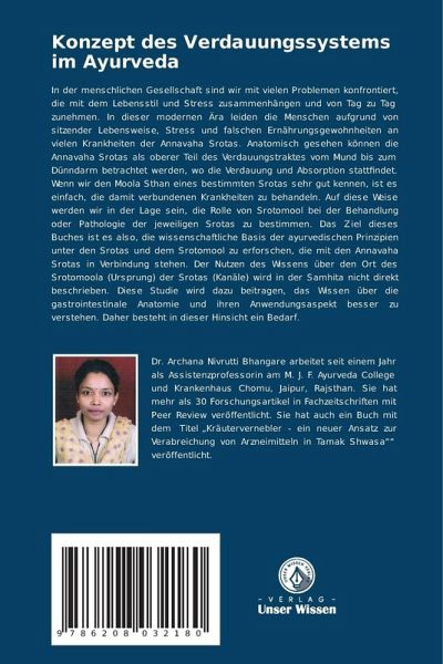 In der menschlichen Gesellschaft sind wir mit vielen Problemen konfrontiert, die mit dem Lebensstil und Stress zusammenhängen und von Tag zu Tag zunehmen. In dieser modernen Ära leiden die Menschen aufgrund von sitzender Lebensweise, Stress und falschen Ernährungsgewohnheiten an vielen Krankheiten der Annavaha Srotas. Anatomisch gesehen können die Annavaha Srotas als oberer Teil des Verdauungstraktes vom Mund bis zum Dünndarm betrachtet werden, wo die Verdauung und Absorption stattfindet. Wenn wir den Moola Sthan eines bestimmten Srotas sehr gut kennen, ist es einfach, die damit verbundenen Krankheiten zu behandeln. Auf diese Weise werden wir in der Lage sein, die Rolle von Srotomool bei der Behandlung oder Pathologie der jeweiligen Srotas zu bestimmen. Das Ziel dieses Buches ist es also, die wissenschaftliche Basis der ayurvedischen Prinzipien unter den Srotas und dem Srotomool zu erforschen, die mit den Annavaha Srotas in Verbindung stehen. Der Nutzen des Wissens über den Ort des Srotomoola (Ursprung) der Srotas (Kanäle) wird in der Samhita nicht direkt beschrieben. Diese Studie wird dazu beitragen, das Wissen über die gastrointestinale Anatomie und ihren Anwendungsaspekt besser zu verstehen. Daher besteht in dieser Hinsicht ein Bedarf.