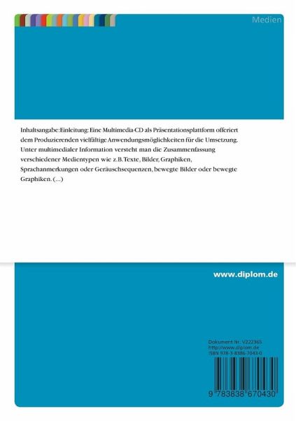 Eine Multimedia-CD als Präsentationsplattform offeriert dem Produzierenden vielfältige Anwendungsmöglichkeiten für die Umsetzung. Unter multimedialer Information versteht man die Zusammenfassung verschiedener Medientypen wie z.B. Texte, Bilder, Graphiken, Sprachanmerkungen oder Geräuschsequenzen, bewegte Bilder oder bewegte Graphiken. Im Vergleich zu einer Internetpräsentation, die in der Regel aus Text und Grafiken besteht, erlaubt die CD auch das Einbinden von speicherintensiven Medien wie etwa Audio- und Videobeiträge. CD-ROM-Laufwerke sind weit verbreitet und die CD ist als Medium anerkannt. Die Umsetzungsmöglichkeiten für die Produktion sind daher vielfältig. Um so mehr ist deshalb auf die Konzeption und Planung bei der Produktion einer Multimedia CD zu achten. Dadurch lassen sich benötigte Ressourcen effizienter nutzen und ein Verfehlen des Projektzieles (in der Regel die Zufriedenheit des Auftraggebers) wird vermieden.