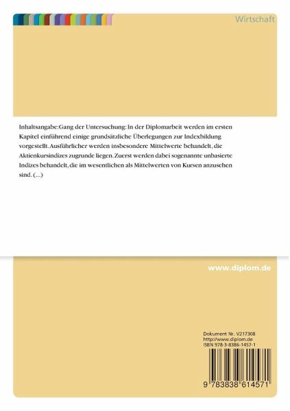 In der Diplomarbeit werden im ersten Kapitel einführend einige grundsätzliche Überlegungen zur Indexbildung vorgestellt. Ausführlicher werden insbesondere Mittelwerte behandelt, die Aktienkursindizes zugrunde liegen.