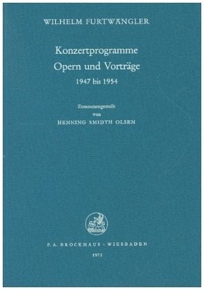 Die hier vorliegende Zusammenstellung der Konzerte und Opern, die Wilhelm Furtwängler 1947 - 1954 dirigiert hat, gründet sich in erster Linie auf Auskünfte, die ich dem Archiv von Frau Elisabeth Furtwängler entnommen habe. Ohne ihre gütige Hilfe, für die ich sehr dankbar bin, wäre dieses kleine Buch nicht zustande gekommen.