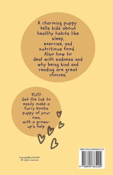 A charming puppy tells kids about healthy habits like sleep, exercise, and nutritious food. Also how to deal with sadness and why being kind and reading are great choices. Plus! Get the link to easily make a furry Kooba puppy of your own, with a grown-up's help.