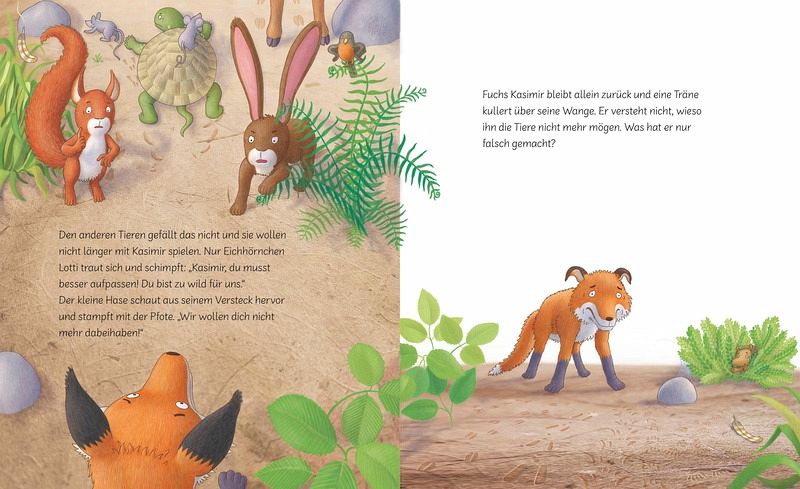 Kasimir ist ein ausgelassener, fröhlicher kleiner Fuchs, der gern mit den anderen Tieren im Wald herumtobt. Aber die wollen nicht mehr mit ihm spielen, denn er ist ihnen zu wild und laut. Darüber ist Kasimir so traurig, dass er seine Fröhlichkeit verliert und nicht mehr lachen kann. Aber zum Glück ist da noch Isidor, der Igel. Auch er ist oft allein, weil alle vor seinen Stacheln Angst haben. Er bietet Kasimir seine Freundschaft an. Aber wird das reichen, damit der kleine Fuchs sein Lachen wiederfindet? Eine einfühlsam erzählte Geschichte über Ausgrenzung, Einzigartigkeit und die Kraft einer großartigen Freundschaft.