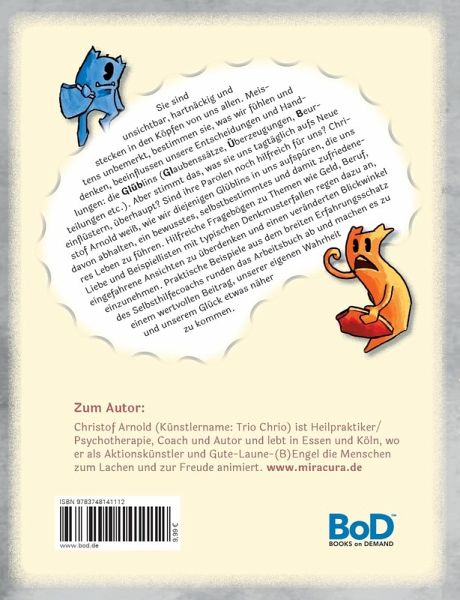 Sie sind unsichtbar, hartnäckig und stecken in den Köpfen von uns allen. Meistens unbemerkt, bestimmen sie, was wir fühlen und denken, beeinflussen unsere Entscheidungen und Handlungen: die Glüblins (Glaubenssätze, Überzeugungen, Beurteilungen etc.). Aber stimmt das, was sie uns tagtäglich aufs Neue einflüstern, überhaupt? Sind ihre Parolen noch hilfreich für uns? Christof Arnold weiß, wie wir diejenigen Glüblins in uns aufspüren, die uns davon abhalten, ein bewusstes, selbstbestimmtes und damit zufriedeneres Leben zu führen. Hilfreiche Fragebögen zu Themen wie Geld, Beruf, Liebe und Beispiellisten mit typischen Denkmusterfallen regen dazu an, eingefahrene Ansichten zu überdenken und einen veränderten Blickwinkel einzunehmen. Praktische Beispiele aus dem breiten Erfahrungsschatz des Selbsthilfecoachs runden das Arbeitsbuch ab und machen es zu einem wertvollen Beitrag, unserer eigenen Wahrheit und unserem Glück etwas näher zu kommen.