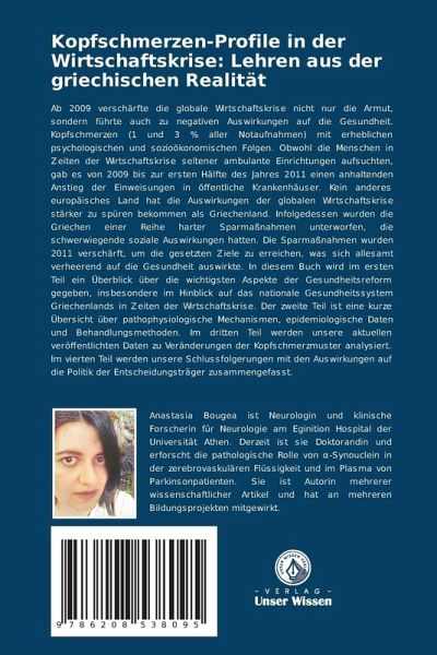 Ab 2009 verschärfte die globale Wirtschaftskrise nicht nur die Armut, sondern führte auch zu negativen Auswirkungen auf die Gesundheit. Kopfschmerzen (1 und 3 % aller Notaufnahmen) mit erheblichen psychologischen und sozioökonomischen Folgen. Obwohl die Menschen in Zeiten der Wirtschaftskrise seltener ambulante Einrichtungen aufsuchten, gab es von 2009 bis zur ersten Hälfte des Jahres 2011 einen anhaltenden Anstieg der Einweisungen in öffentliche Krankenhäuser. Kein anderes europäisches Land hat die Auswirkungen der globalen Wirtschaftskrise stärker zu spüren bekommen als Griechenland. Infolgedessen wurden die Griechen einer Reihe harter Sparmaßnahmen unterworfen, die schwerwiegende soziale Auswirkungen hatten. Die Sparmaßnahmen wurden 2011 verschärft, um die gesetzten Ziele zu erreichen, was sich allesamt verheerend auf die Gesundheit auswirkte. In diesem Buch wird im ersten Teil ein Überblick über die wichtigsten Aspekte der Gesundheitsreform gegeben, insbesondere im Hinblick auf das nationale Gesundheitssystem Griechenlands in Zeiten der Wirtschaftskrise. Der zweite Teil ist eine kurze Übersicht über pathophysiologische Mechanismen, epidemiologische Daten und Behandlungsmethoden. Im dritten Teil werden unsere aktuellen veröffentlichten Daten zu Veränderungen der Kopfschmerzmuster analysiert. Im vierten Teil werden unsere Schlussfolgerungen mit den Auswirkungen auf die Politik der Entscheidungsträger zusammengefasst.