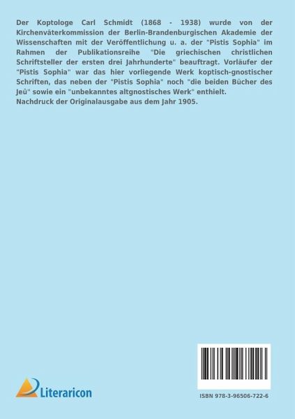 Der Koptologe Carl Schmidt (1868 - 1938) wurde von der Kirchenväterkommission der Berlin-Brandenburgischen Akademie der Wissenschaften mit der Veröffentlichung u. a. der "Pistis Sophia" im Rahmen der Publikationsreihe "Die griechischen christlichen Schriftsteller der ersten drei Jahrhunderte" beauftragt. Vorläufer der "Pistis Sophia" war das hier vorliegende Werk koptisch-gnostischer Schriften, das neben der "Pistis Sophia" noch "die beiden Bücher des Jeû" sowie ein "unbekanntes altgnostisches Werk" enthielt. Nachdruck der Originalausgabe aus dem Jahr 1905.