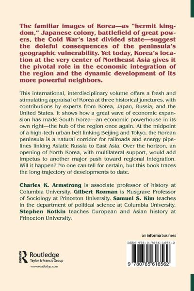 The common images of Korea view the peninsula as a long-standing battleground for outside powers and the Cold War's last divided state. But, Korea's location at the very center of Northeast Asia gives it a pivotal role in the economic integration of the region and the dynamic development of its more powerful neighbors. A great wave of economic expansion, driven first by the Japanese miracle and then by the ascent of China, has made South Korea - an economic powerhouse in its own right - the hub of the region once again, a natural corridor for railroads and energy pipelines linking Asiatic Russia to China and Japan. And, over the horizon, an opening of North Korea, with multilateral support, would add another major push toward regional integration. Illuminating the role of the Korean peninsula in three modern historical periods, the eminent international contributors to this volume offer a fresh and stimulating appraisal of Korea as the key to the coalescence of a broad, open Northeast Asian regionalism in the twenty-fifth century.