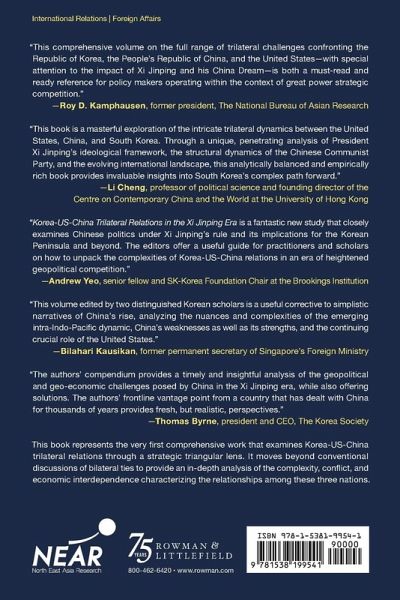 This book presents an examination of the trilateral relations among Korea, the US, and China during the Xi Jinping era. By addressing the multifaceted nature of these relationships it aims to shed light on the strategic maneuvers and diplomatic challenges that Korea faces in navigating its place between the competing interests of the US and China.