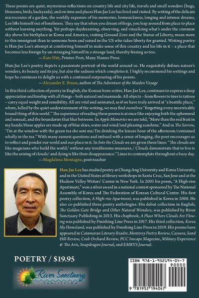 Han-Jae Lee has studied poetry at Chung-Ang University and Korea University, and in the United States at library workshops in Santa Cruz, San Jose and at the Hudson Valley Writers' Center in New York. In 2005 his poem, "A High-rise Apartment," won a silver award in a national contest sponsored by The National Assembly of Korea and The Federation of Korean Cultural Center. His first poetry collection, A High-rise Apartment, was published in Korea in 2008. He also co-published three poetry anthologies. His debut collection in English, The Golden Gate Bridge and Other Natural Wonders, was published by River Sanctuary Publishing in 2013. His chapbook, A Place Where Clouds Are Flowing, was published by Finishing Line Press in 2017. Lee's poems have appeared in Catamaran Literary Reader, Monterey Poetry Review, Caesura, Sand Hill Review, Crab Orchard Review, PCC Inscape Magazine, Military Experience & The Arts, and EMRYS Journal.