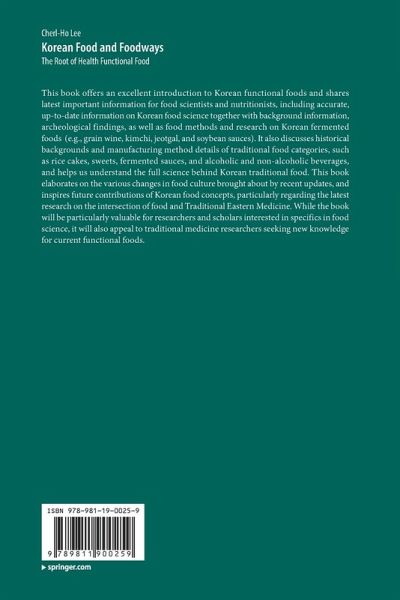 This book offers an excellent introduction to Korean functional foods and shares latest important information for food scientists and nutritionists, including accurate, up-to-date information on Korean food science together with background information, archeological findings, as well as food methods and research on Korean fermented foods (e.g., grain wine, kimchi, jeotgal, and soybean sauces). It also discusses historical backgrounds and manufacturing method details of traditional food categories, such as rice cakes, sweets, fermented sauces, and alcoholic and non-alcoholic beverages, and helps us understand the full science behind Korean traditional food. This book elaborates on the various changes in food culture brought about by recent updates, and inspires future contributions of Korean food concepts, particularly regarding the latest research on the intersection of food and Traditional Eastern Medicine. While the book will be particularly valuable for researchers and scholars interested in specifics in food science, it will also appeal to traditional medicine researchers seeking new knowledge for current functional foods.