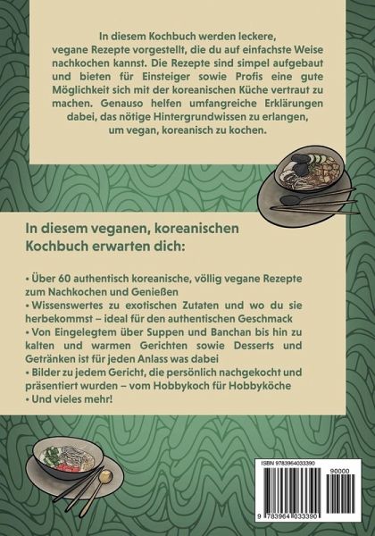 Du sehnst dich nach einem einzigartigen, veganen Geschmackserlebnis? Du hast keine Lust mehr auf plumpen Tofu, Fleischersatz aus Soja oder langweiliges Gemüse? Du brauchst einfach etwas Gesundes, Frisches, Selbstgekochtes und unglaublich Leckeres in deinem Alltag? Und das alles authentisch, koreanisch? Dann ist Koreanisch, authentisch, vegan! genau das richtige für dich!KLAPPENTEXT:In diesem Kochbuch werden leckere, vegane Rezepte vorgestellt, die du auf einfachste Weise nachkochen kannst. Die Rezepte sind simpel aufgebaut und bieten für Einsteiger sowie Profis eine gute Möglichkeit sich mit der koreanischen Küche vertraut zu machen. Genauso helfen umfangreiche Erklärungen dabei, das nötige Hintergrundwissen zu erlangen, um vegan, koreanisch zu kochen.In diesem veganen, koreanischen Kochbuch erwarten dich:- Über 60 authentisch koreanische, völlig vegane Rezepte zum Nachkochen und Genießen- Wissenswertes zu exotischen Zutaten und wo du sie herbekommst - ideal für den authentischenGeschmack- Von Eingelegtem über Suppen und Banchan bis hin zu kalten und warmen Gerichten sowie Desserts und Getränken ist für jeden Anlass was dabei- Bilder zu jedem Gericht, die persönlich nachgekocht und präsentiert wurden - vom Hobbykoch für Hobbyköche- Und vieles mehr!Übrigens: Um die Umwelt zu schonen und dir einen günstigen Preis anbieten zu können, wird das Taschenbuch in schwarz-weiß gedruckt. Das E-Book und die gebundene Ausgabe sind in Farbe erhältlich.Saftiger Kimchi, herzhaft-knusprig gebratener Tofu in süßlich-würziger Sauce, frittierter Blumenkohl in einem Mantel aus süß-scharfer Chilipaste und Sesam ... Diese und viele weitere Gerichte warten bloß darauf, von dir nachgekocht und probiert zu werden!Wieso zögerst du noch? Mach dich bereit für eine spannende, kulinarische Reise nach Korea. Und das komplett vegan!Tauche ein in die köstliche Küche Koreas, indem du auf 'Jetzt kaufen' klickst, und erlebe die koreanische Küche, wie du sie noch nie gegessen hast.