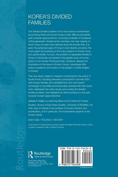 The divided families problem is a serious social issue in North and South Korea, involving hundreds of thousands of first generation divided family members, most of whom have not seen their relatives since the Korean War. It is the most pressing humanitarian issue between the two Koreas, and is connected to the greater issue of human rights in North Korea today. However, little serious academic work exists on the subject, in either English or Korean. This new study, based on research conducted in Korea, including interviews in 2001 with Korean families who benefited from the most recent exchanges, addresses the many issues surrounding the divided family problem, and highlights its importance in the path towards Korean rapprochement.
