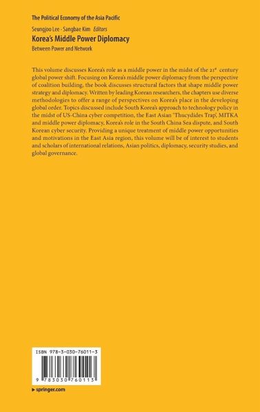 Chapter 1. Introduction.- Chapter 2. Thucydides on Thucydides Trap: A Reading with the Emphasis of Middle Powers and its Application in the East Asian Context.- Chapter 3. Roles of Middle Power in East Asia: The Perspective of Network Theories of World Politics.- Chapter 4. Emerging Powers and a Middle Power: U.S.-China Competition and South Korea in Cyberspace.- Chapter 5. The Dilemma of South Korea as a Middle Power With Regards to the Conflicts Between the United States and China in the South China Sea.- Chapter 6. The Inter-network Politics of Cyber Security and Middle Power Diplomacy: A Korean Perspective.- Chapter 7. Power Shift, Power Diffusion, and Middle Power Diplomacy: MIKTA and Changes in Global Governance.- Chapter 8. Unpacking the Domestic Political Foundation of Middle Powers: Ups and Downs in South Korea's Middle Power Diplomacy toward China.